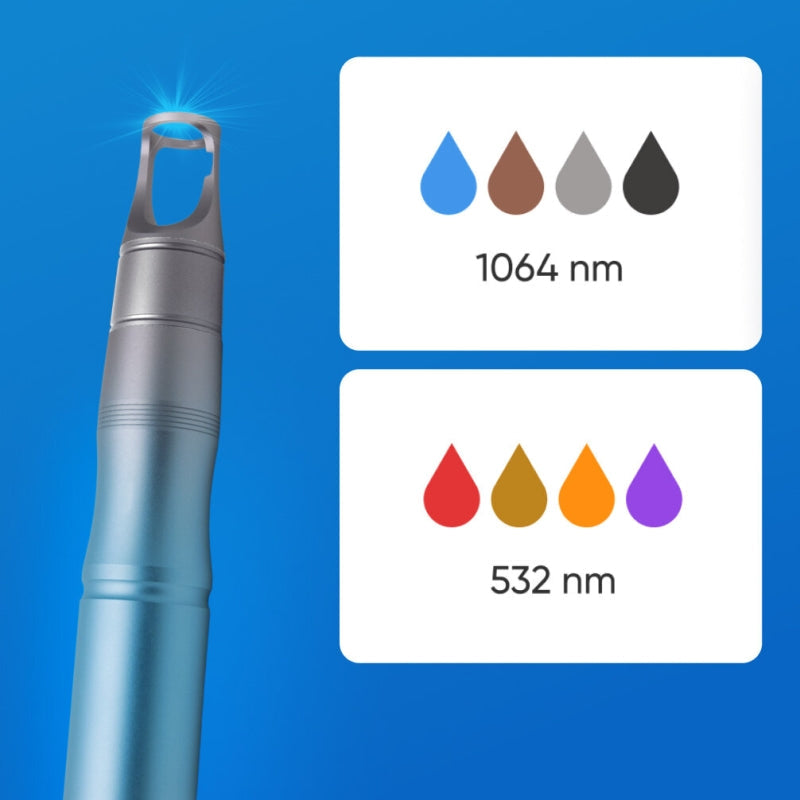 - 1064 nm: この波長は、黒や青などの深いインクの色や真皮の色素沈着問題の治療に効果的です。